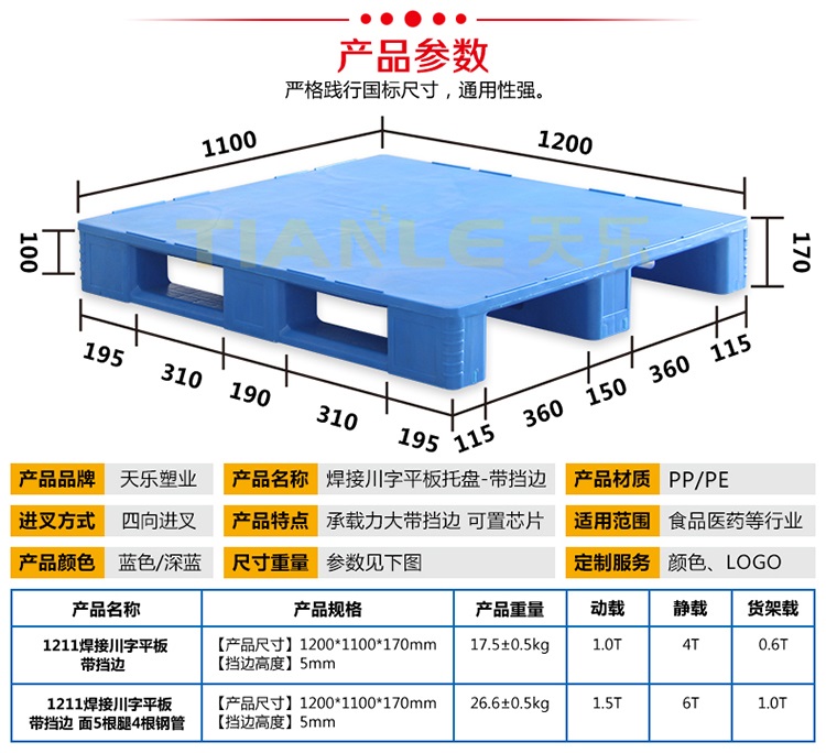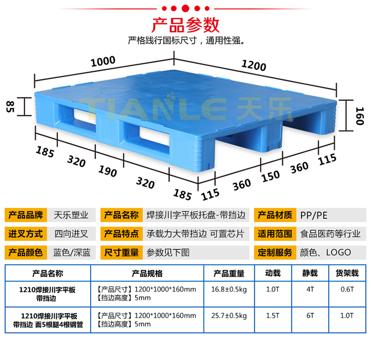 我公司擁有托盤焊接設備兩臺,主要生產(chǎn):1210焊接川字平板170mm高帶擋邊不帶擋邊托盤;1210焊接川字平板160mm高帶擋邊不帶擋邊托盤;1211焊接川字平板170mm高帶擋邊不帶擋邊托盤;1210焊接川字平板150mm高托盤。我公司提供產(chǎn)品定制、代加工服務。