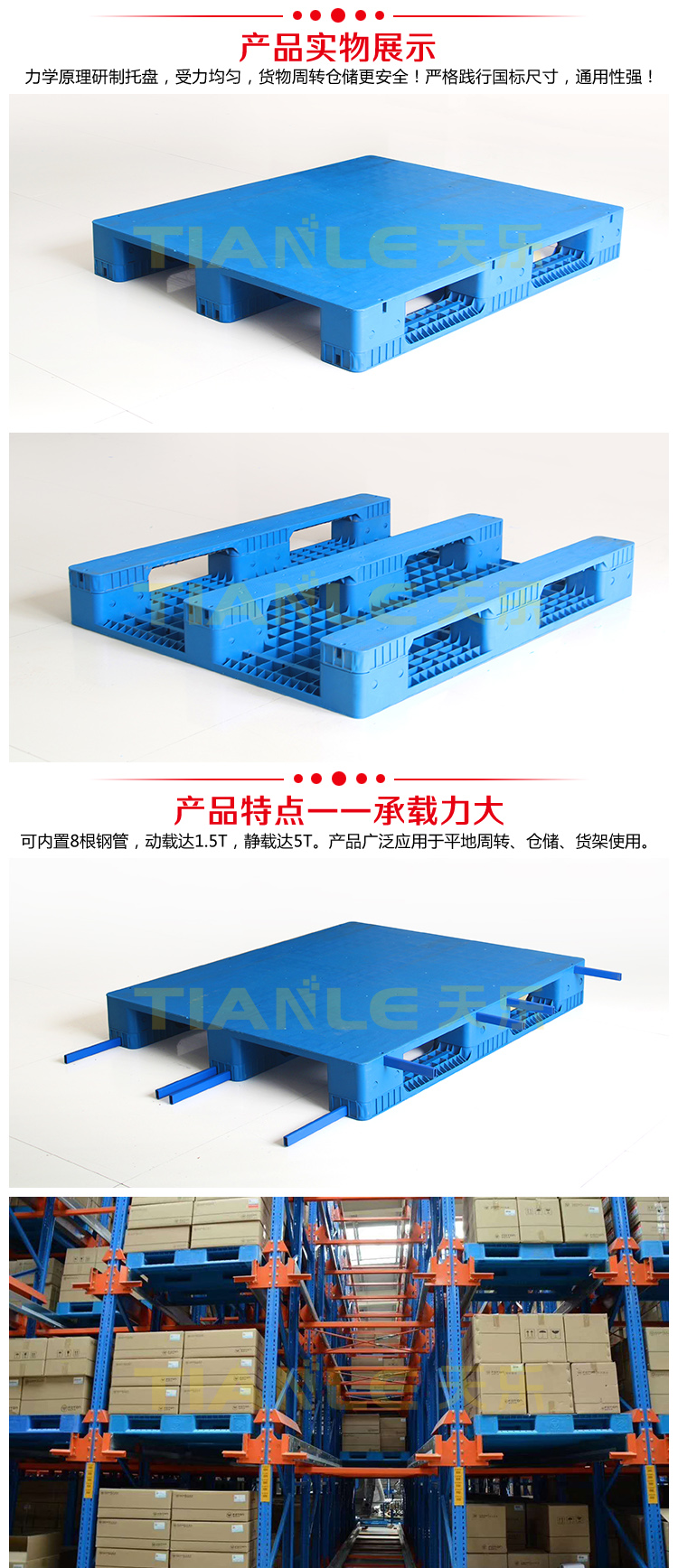 山東天樂塑料科技有限公司,主要生產(chǎn)塑料托盤,塑料周轉(zhuǎn)筐,塑料垃圾桶,銷售木包裝箱木托盤,膠合板托盤,產(chǎn)品使用于汽車、食品、醫(yī)藥、造紙、印刷、電子、電器、化工、紡織、服裝、倉儲物流、環(huán)衛(wèi)等行業(yè)。產(chǎn)品多規(guī)格全價格實惠,大廠家售后保障體系完善。產(chǎn)品品種,以載重量分類,包括:一次 使用的特輕型、輕型、標(biāo)準(zhǔn)型、貨架加重型等適用范圍:食品醫(yī)藥化工紡織汽配廠等行業(yè)倉儲物流運輸用