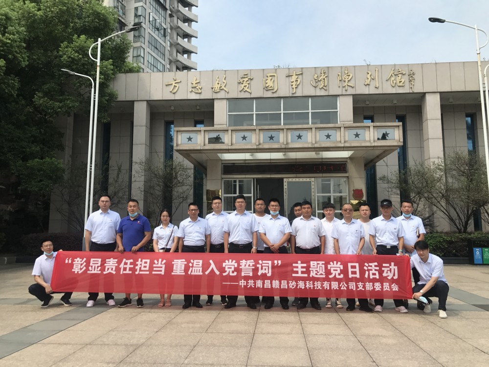 7月29日上午,南昌贛昌砂??萍加邢薰军h支部組織全體黨員通過“線上+線下”模式在公司黨員活動室及方志敏愛國事跡陳列館,開展了以“彰顯責任擔當 重溫入黨誓詞”為主題的黨日活動,支部全體黨員參加,活動由支部臨時負責人熊澄主持。