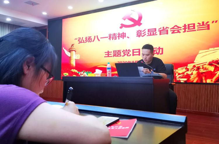 南昌贛昌砂石有限公司經(jīng)營分公司黨支部聯(lián)合機關(guān)黨支部于2020年8月3日下午在公司2206會議室召開“弘揚八一精神、彰顯省會擔(dān)當(dāng)”主題黨日活動,活動由經(jīng)營分公司黨支部書記熊志主持,機關(guān)黨支部、經(jīng)營分公司黨支部全體黨員,入黨積極分子參加。