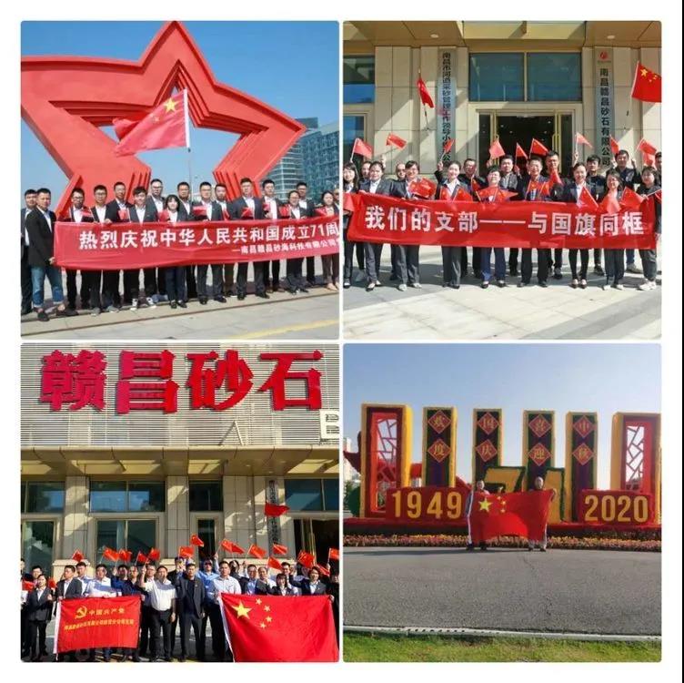 為熱烈慶祝新中國(guó)成立71周年,回顧光輝歷程、偉大成就和寶貴經(jīng)驗(yàn),激勵(lì)廣大黨員弘揚(yáng)愛國(guó)主義精神,厚植愛國(guó)主義情懷,展現(xiàn)新時(shí)代黨組織和黨員的良好風(fēng)貌,切實(shí)把愛國(guó)熱情轉(zhuǎn)化為公司發(fā)展的強(qiáng)大動(dòng)力,根據(jù)南昌市委組織部發(fā)布的“2020年10月主題黨日活動(dòng)指導(dǎo)要求”和集團(tuán)相關(guān)文件要求,10月9日,南昌贛昌砂石有限公司各黨支部開展了“我與國(guó)旗同框,我向祖國(guó)表白”主題黨日活動(dòng)。