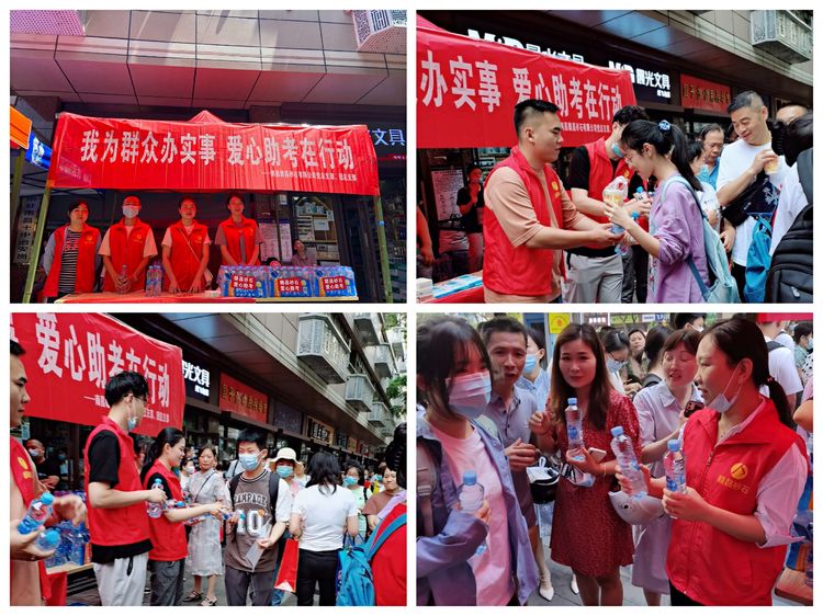 為了切實(shí)把學(xué)習(xí)成效轉(zhuǎn)化為工作動(dòng)力和實(shí)際成效,積極響應(yīng)“我為群眾辦實(shí)事”的要求及號(hào)召,以實(shí)際行動(dòng)回饋社會(huì),贛昌砂石公司黨總支部、團(tuán)總支部聯(lián)合南昌晚報(bào)愛心護(hù)考,組織公司的黨員、團(tuán)員志愿者們?cè)谀喜锌紙?chǎng)外的愛心助考點(diǎn),免費(fèi)為考生及陪考家長(zhǎng)們送水。