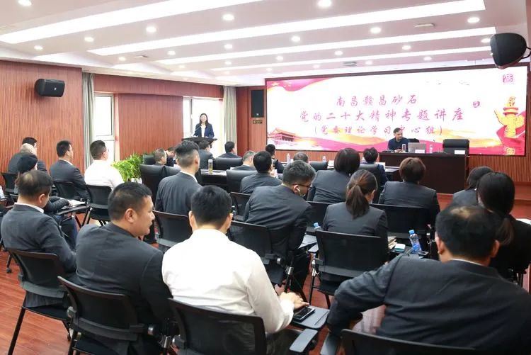 會議特邀了江西社科大講堂——江西財經(jīng)大學(xué)教授夏德根進(jìn)行專題輔導(dǎo),夏教授以《中國式現(xiàn)代化——黨的二十大精神》為主題,由淺入深的宣講黨的二十大精神,講解過去五年的工作和新時代十年的偉大變革,解讀中國式現(xiàn)代化的宏偉藍(lán)圖,解析全面推進(jìn)中華民族偉大復(fù)興的重要基礎(chǔ)、指導(dǎo)思想和路徑抉擇。講座視野開闊、權(quán)威準(zhǔn)確、入情入理,使全體參會人員接受了一次深刻的黨性教育和精神洗禮。