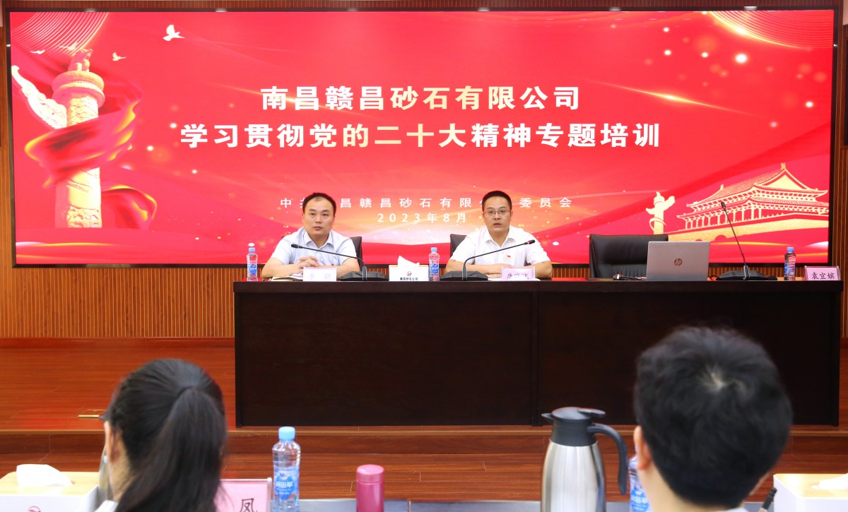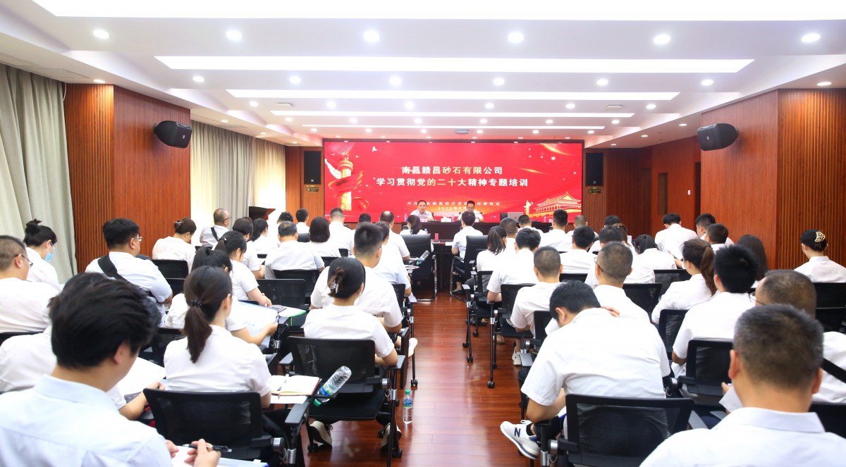 為深入學(xué)習(xí)貫徹黨的二十大精神,進(jìn)一步提升黨員的黨性修養(yǎng)和理論水平,推動(dòng)公司高質(zhì)量健康發(fā)展,8月23日,贛昌砂石公司在22樓第五會(huì)議室組織開(kāi)展了為期3天的學(xué)習(xí)貫徹黨的二十大精神專題培訓(xùn)班,公司領(lǐng)導(dǎo)班子及全體黨員干部共計(jì)80余人參加。公司黨委副書(shū)記、總經(jīng)理李驍主持開(kāi)班儀式,黨委書(shū)記、董事長(zhǎng)唐曉飛作開(kāi)班動(dòng)員講話。