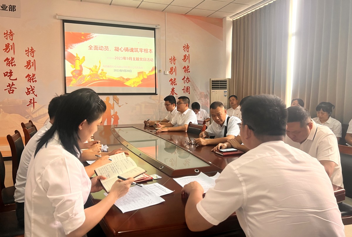 為深入學(xué)習(xí)貫徹習(xí)近平新時(shí)代中國特色社會(huì)主義思想和黨的二十大精神,9月20日,南昌贛昌砂石有限公司經(jīng)營分公司黨支部組織開展了“全面動(dòng)員,凝心鑄魂筑牢根本”主題黨日活動(dòng),活動(dòng)由黨支部書記熊澄主持,支部全體黨員、入黨積極分子參加。
