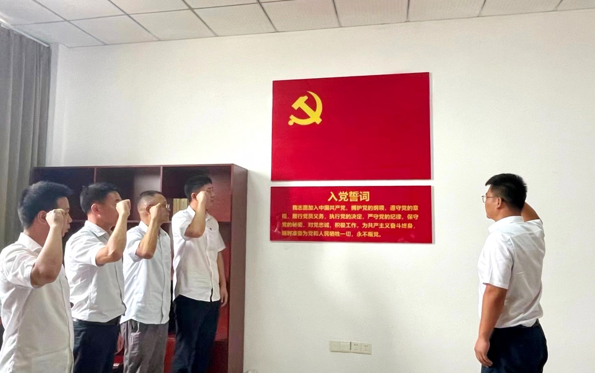 最后,活動(dòng)為本季度5名同志集體過政治生日,并向過“政治生日”黨員贈(zèng)送生日賀卡,5名過“政治生日”黨員代表深情回顧了各自入黨心路歷程,分享了在黨收獲成長,表達(dá)了對黨的崇敬和熱愛之情。在熊澄書記的帶領(lǐng)下,五位同志面向鮮紅的黨旗,高舉右手,重溫入黨誓詞,再一次接受黨性淬煉和思想洗禮。
