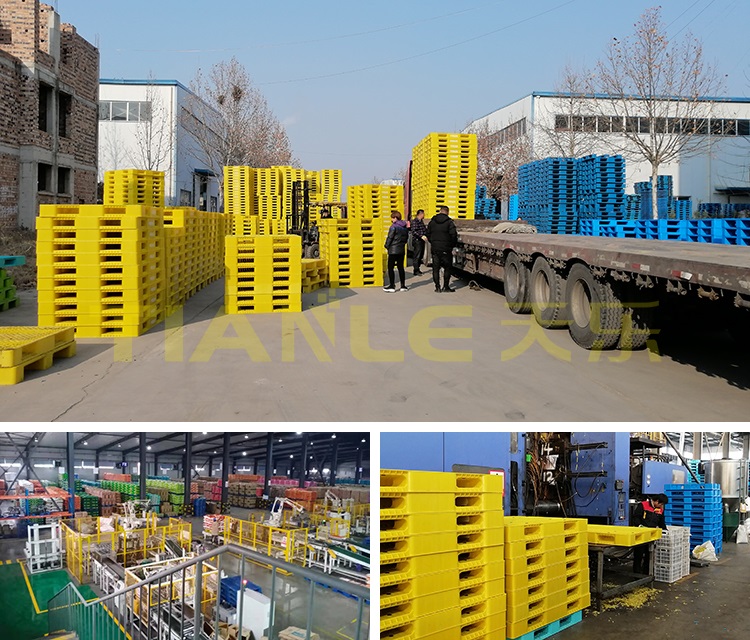 糧油米業(yè)客戶采用我天樂公司生產(chǎn)的1.4*1.2m網(wǎng)格雙面塑料托盤,客戶定制有著豐收之意的金燦燦的黃色托盤,托盤采用四向進叉,動載1.5T,靜載6T,雙面塑料托盤多用于化工化肥、飼料面粉、糧油米業(yè)等行業(yè)貨物平地周轉(zhuǎn)、倉儲墊貨、可堆垛使用。